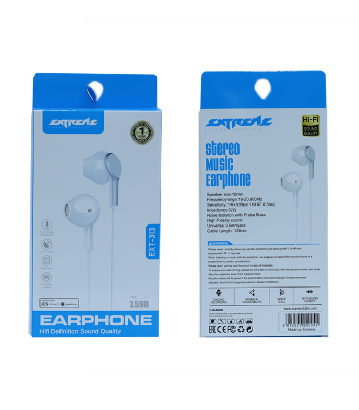 EXTREME Stereo Music Earphone EXT-313 – Hi-Fi Sound, Deep Bass, 3.5mm Wired Earphones