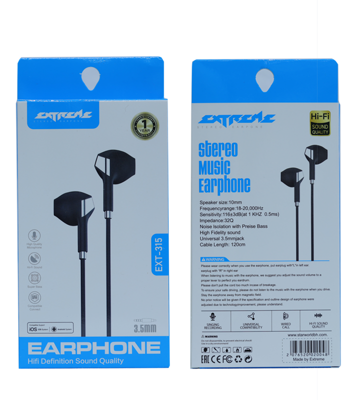EXTREME Stereo Music Earphone EXT-315 – Hi-Fi Sound, 3.5mm Wired Earphones