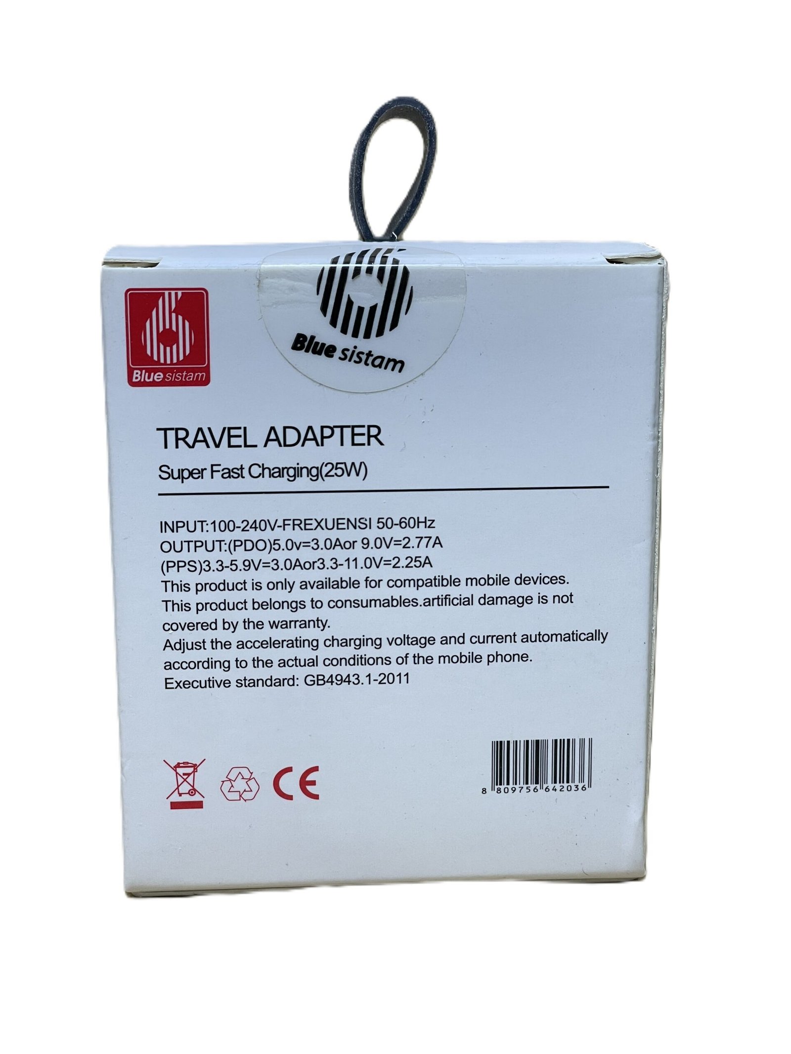 The PD Adapter 25W Blue Sistam (BL12S) is a fast-charging power adapter designed to deliver efficient and reliable charging for smartphones, tablets, and other compatible devices. With 25W Power Delivery (PD) support, it ensures quick charging, helping you save time and stay powered throughout the day.