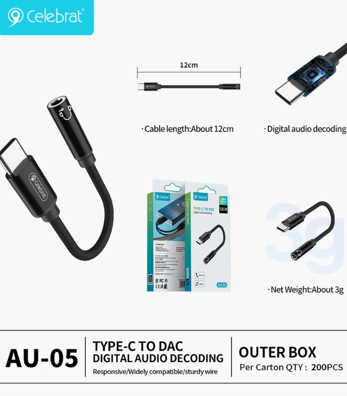 The Celebrat AU05 adapter is an ideal solution for users who want to continue using their 3.5mm audio devices with modern Type-C smartphones and tablets.