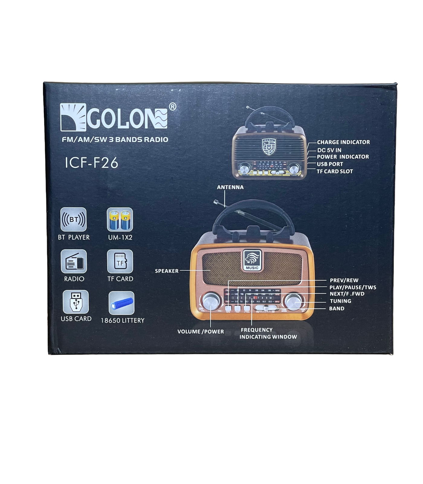 Compact and easy to carry, the GOLON ICF F25 / F26 combines classic radio functionality with modern convenience, making it a practical choice for everyday entertainment.