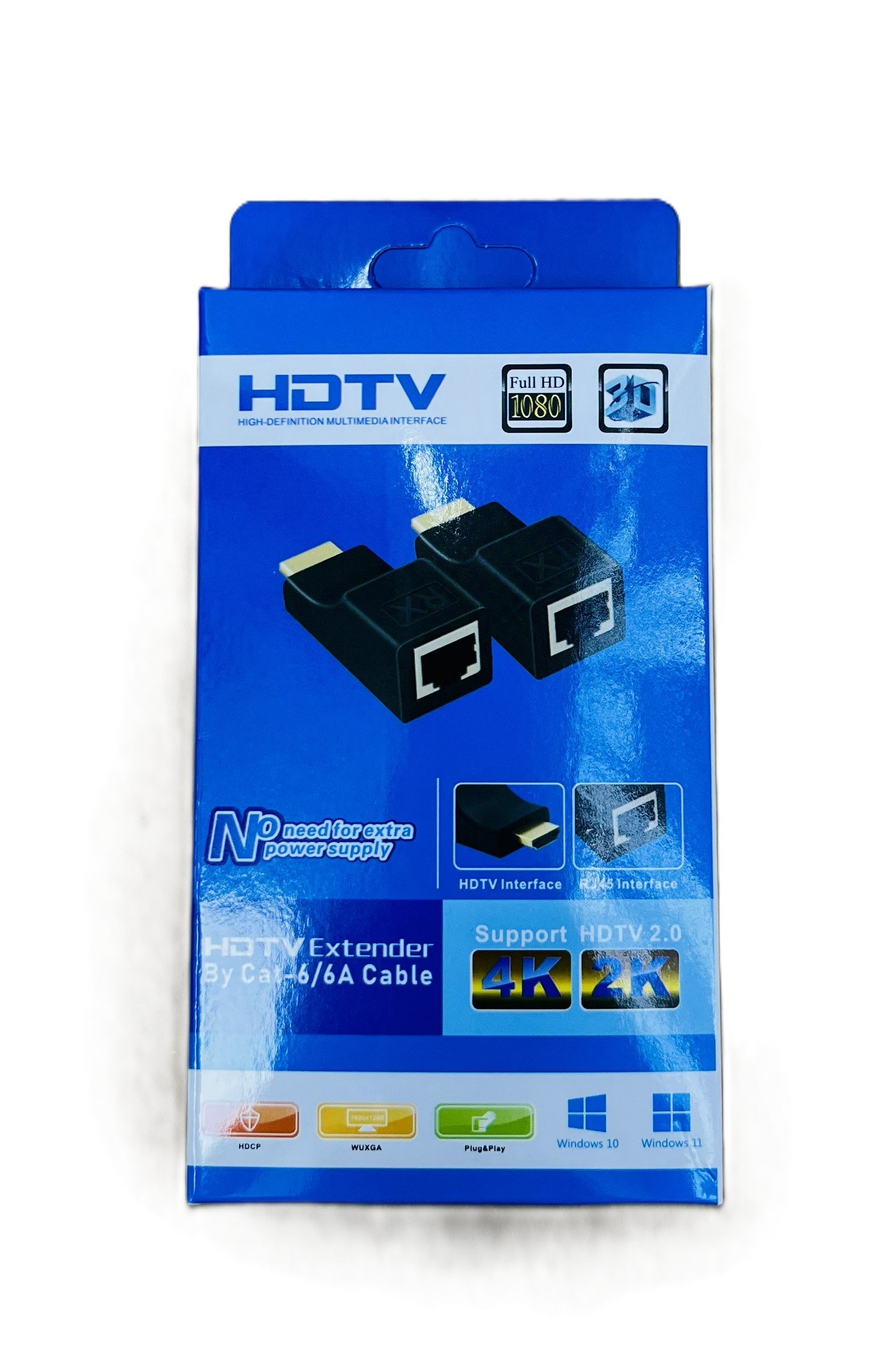 The HDMI Extender 30M is a reliable solution designed to transmit HDMI signals up to 30 meters using a standard Cat5e/Cat6 Ethernet cable. It is perfect for setups where HDMI devices need to be connected over longer distances, such as offices, conference rooms, classrooms, and home entertainment systems.