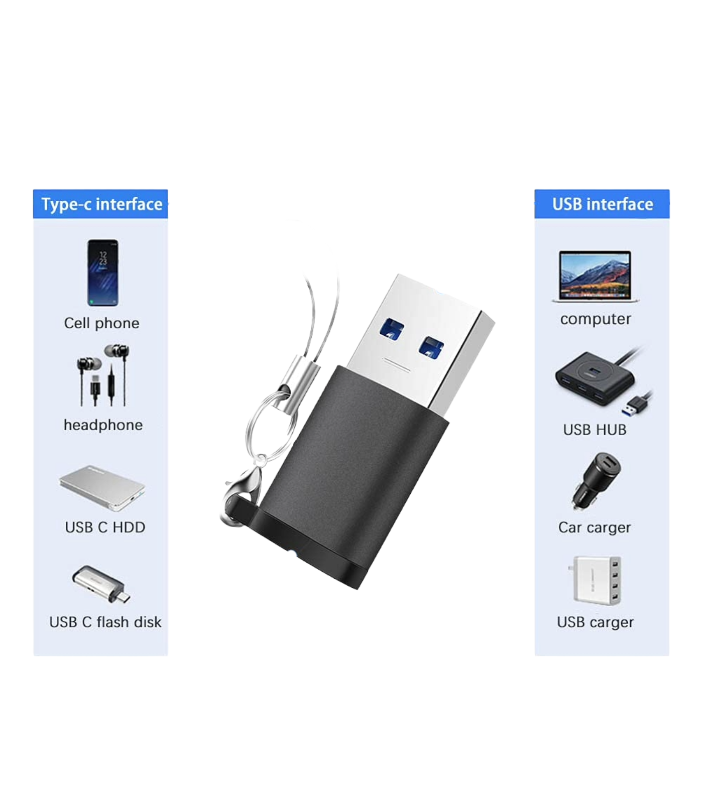 Supporting USB 3.0 technology, this adapter ensures high-speed data transfer (depending on device compatibility), making it ideal for laptops, smartphones, tablets, power banks, and other USB-C enabled devices. It also supports charging and data synchronization.